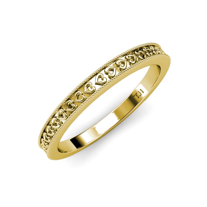 Heart Engraved Womens Wedding Band Stackable with Milgrain Work 18K Yellow Gold More Details ...