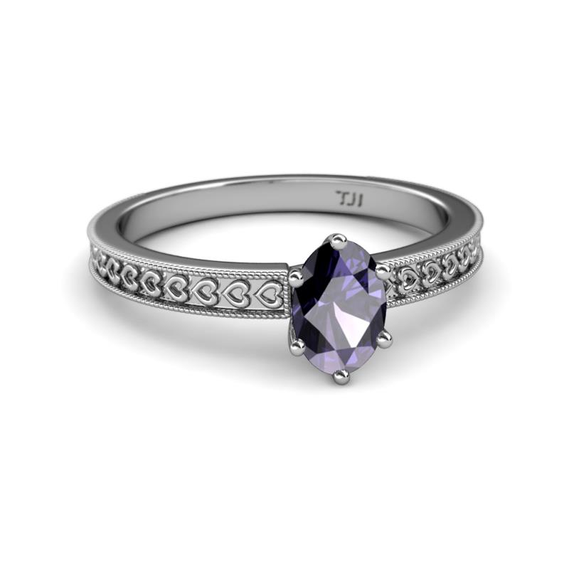 Oval Cut (7x5 mm) Iolite Heart Engraved Womens Solitaire Engagement Ring 0.90 ct 18K White Gold More Details ...