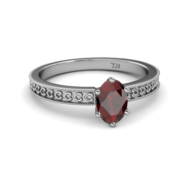 Oval Cut (7x5 mm) Red Garnet Heart Engraved Womens Solitaire Engagement Ring 1.05 ct 14K White Gold More Details ...