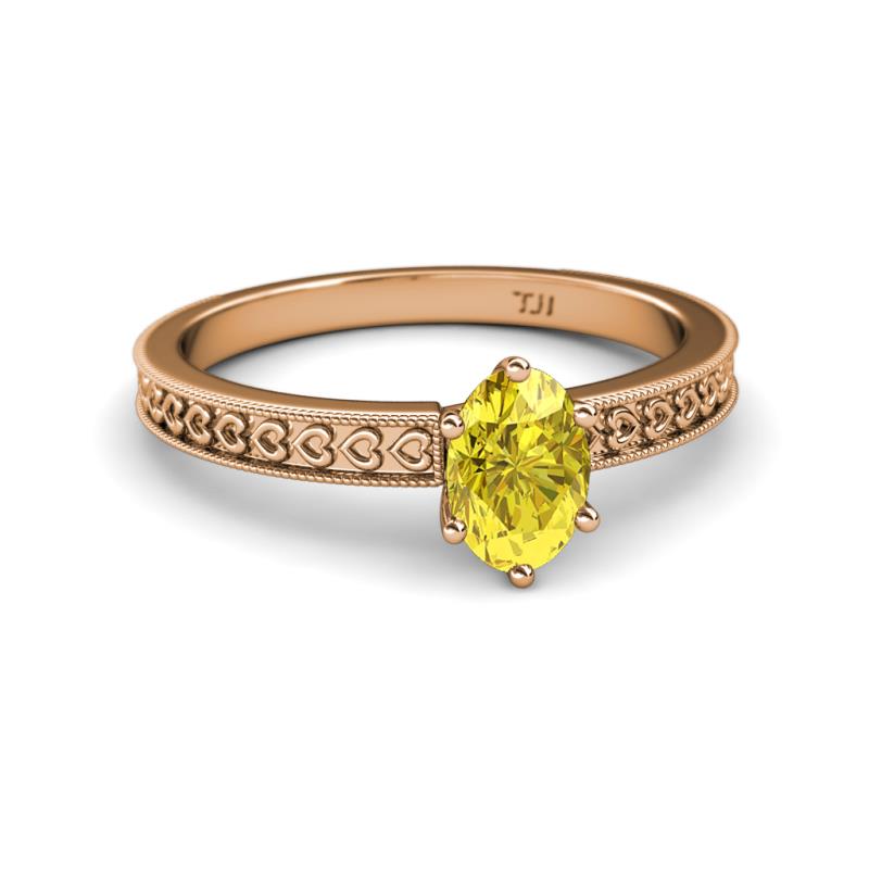 Oval Cut (7x5 mm) Yellow Sapphire Heart Engraved Womens Solitaire Engagement Ring 1.05 ct 14K Rose Gold More Details ...