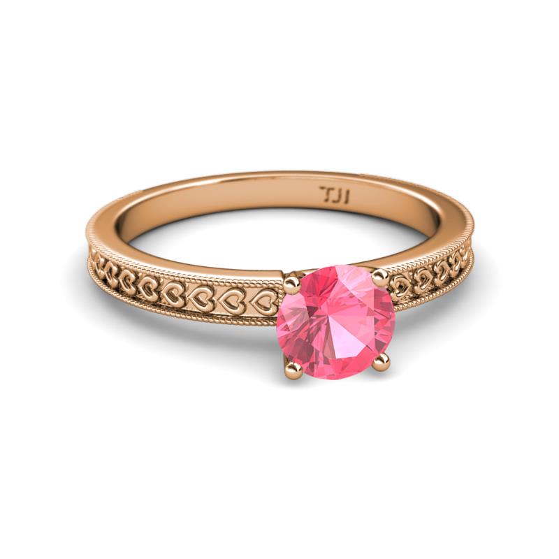 Pink Tourmaline Heart Engraved Milgrain Womens Solitaire Engagement Ring 0.87 ct 14K Rose Gold More Details ...