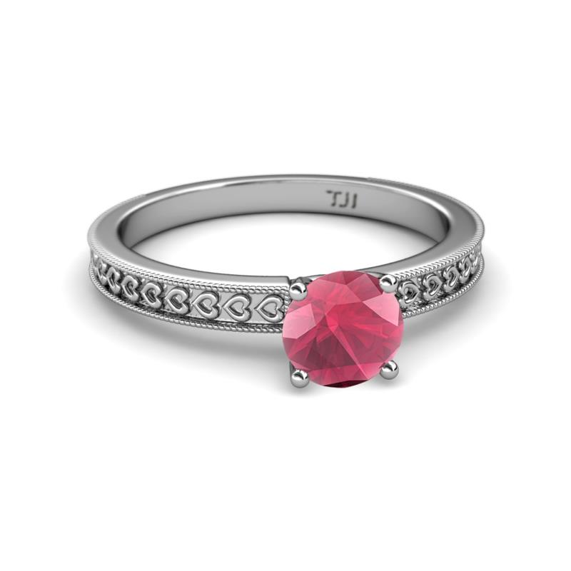Rhodolite Garnet Heart Engraved Milgrain Womens Solitaire Engagement Ring 1.00 ct 14K White Gold More Details ...