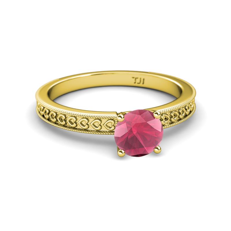 Rhodolite Garnet Heart Engraved Milgrain Womens Solitaire Engagement Ring 1.00 ct 14K Yellow Gold More Details ...