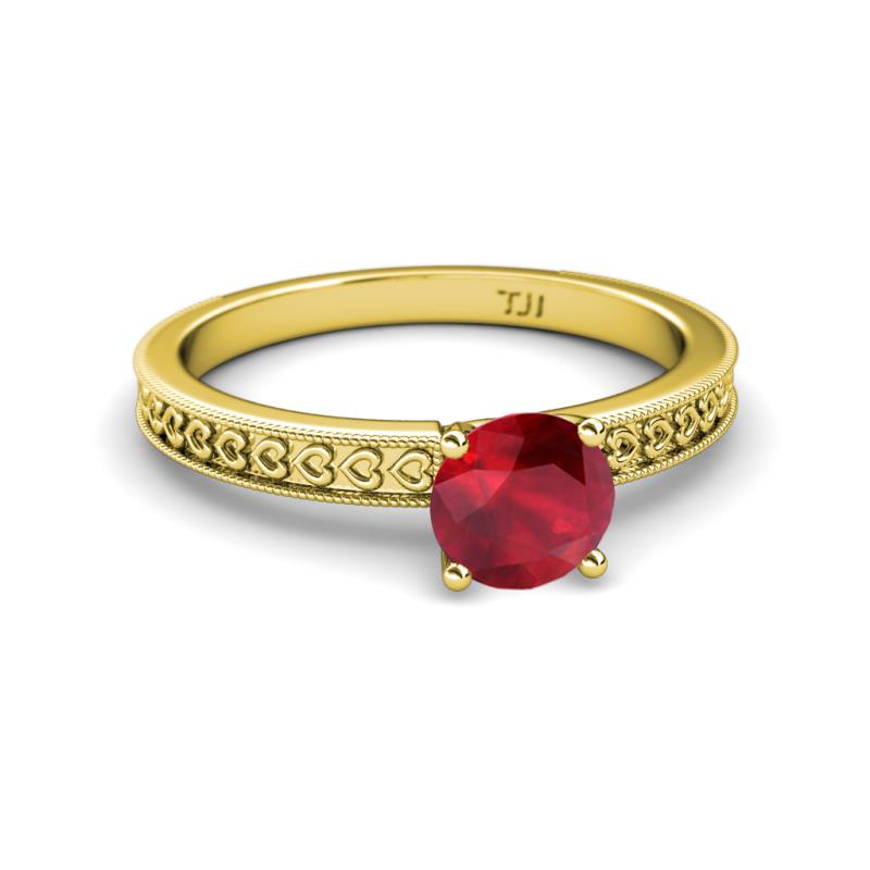 Ruby Heart Engraved Milgrain Womens Solitaire Engagement Ring 0.95 ct 18K Yellow Gold More Details ...