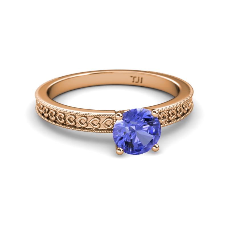 Tanzanite Heart Engraved Milgrain Womens Solitaire Engagement Ring 0.92 ct 18K Rose Gold More Details ...
