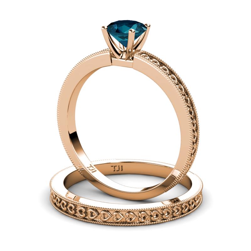 1.00 ct Classic Blue Diamond (6.50 mm) Heart Engraved Solitaire Women Engagement Ring & Wedding Band Set in 18K Rose Gold . More Details ...