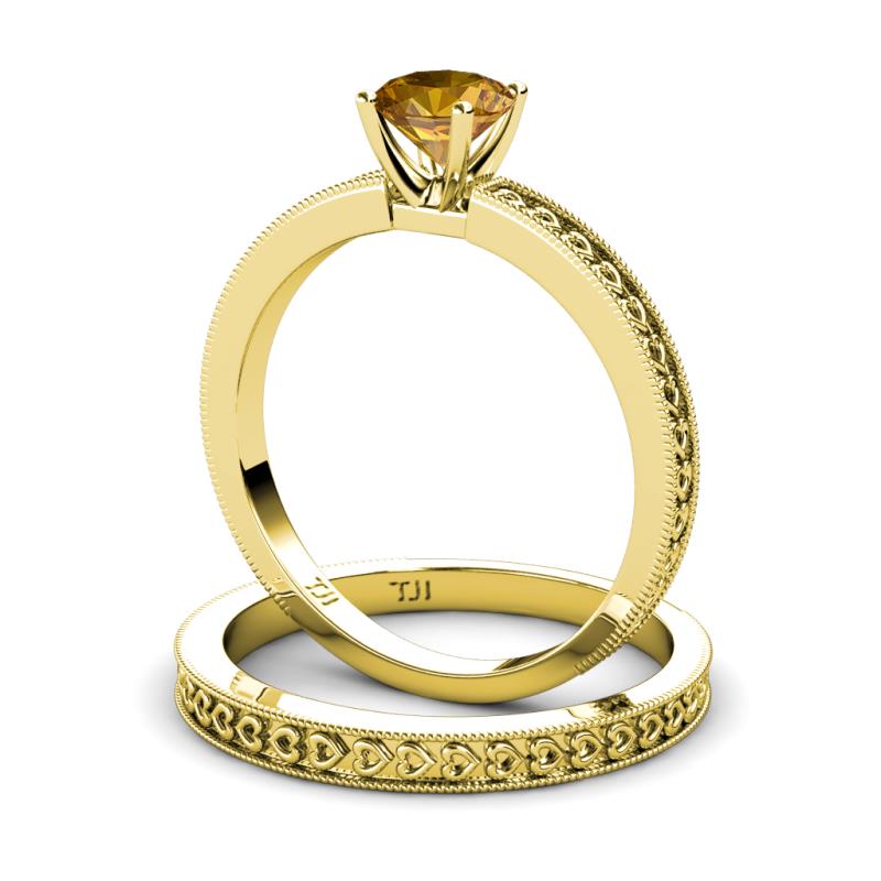0.87 ct Classic Citrine (6.50 mm) Heart Engraved Solitaire Women Engagement Ring & Wedding Band Set in 18K Yellow Gold . More Details ...