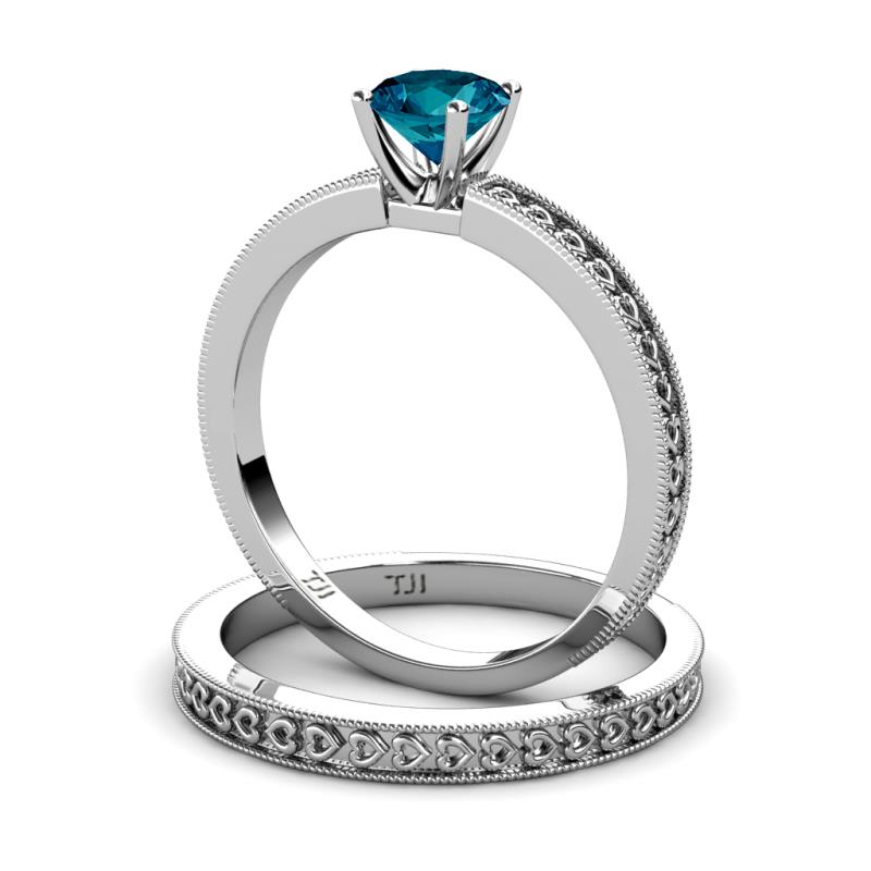 0.95 ct Classic London Blue Topaz (6.50 mm) Heart Engraved Solitaire Women Engagement Ring & Wedding Band Set in 14K White Gold . More Details ...