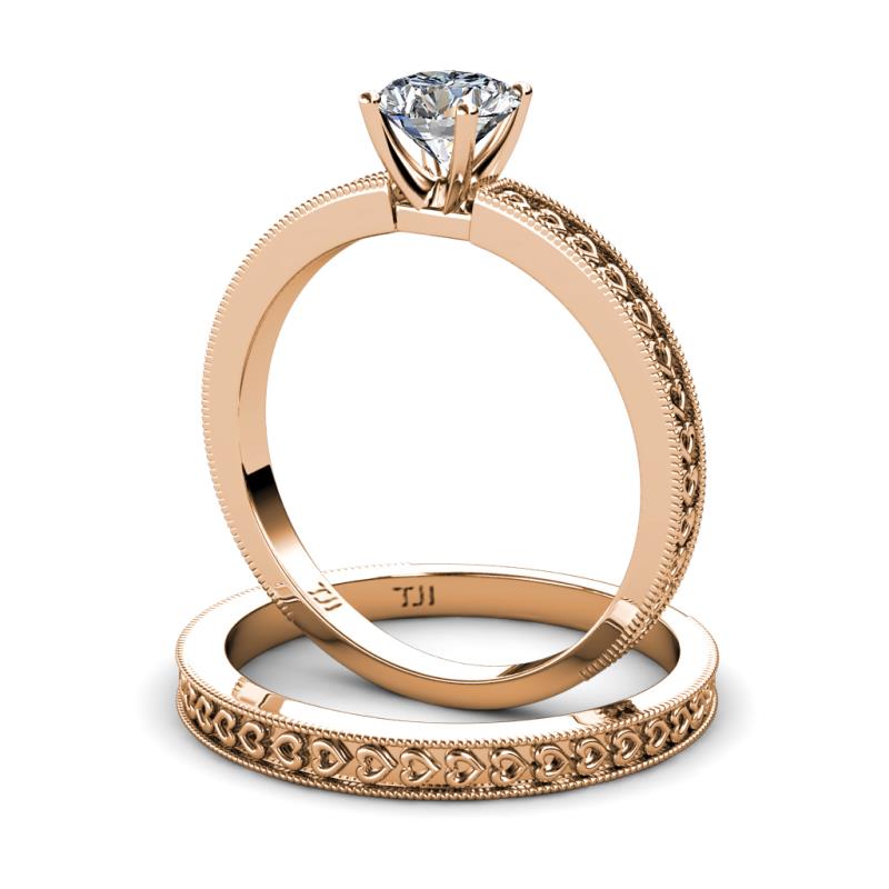 1.00 ct GIA Certified Classic Natural Diamond (6.50 mm) Heart Engraved Solitaire Women Engagement Ring & Wedding Band Set in 18K Rose Gold More Details ...