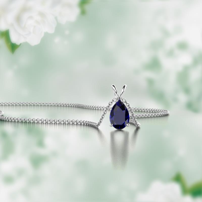Pear Cut (6x4 mm) Blue Sapphire Double Bail Womens Solitaire Pendant Necklace 1/2 ct 14K White Gold.Included 16 Inches 14K White Gold Chain More Details ...