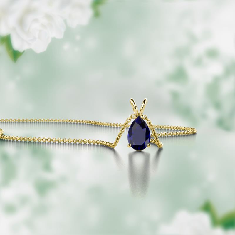Pear Cut (6x4 mm) Blue Sapphire Double Bail Womens Solitaire Pendant Necklace 1/2 ct 14K Yellow Gold.Included 16 Inches 14K Yellow Gold Chain More Details ...