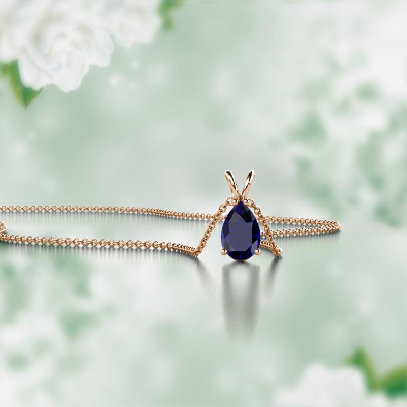 Pear Cut (6x4 mm) Blue Sapphire Double Bail Womens Solitaire Pendant Necklace 1/2 ct 14K Rose Gold.Included 16 Inches 14K Rose Gold Chain More Details ...