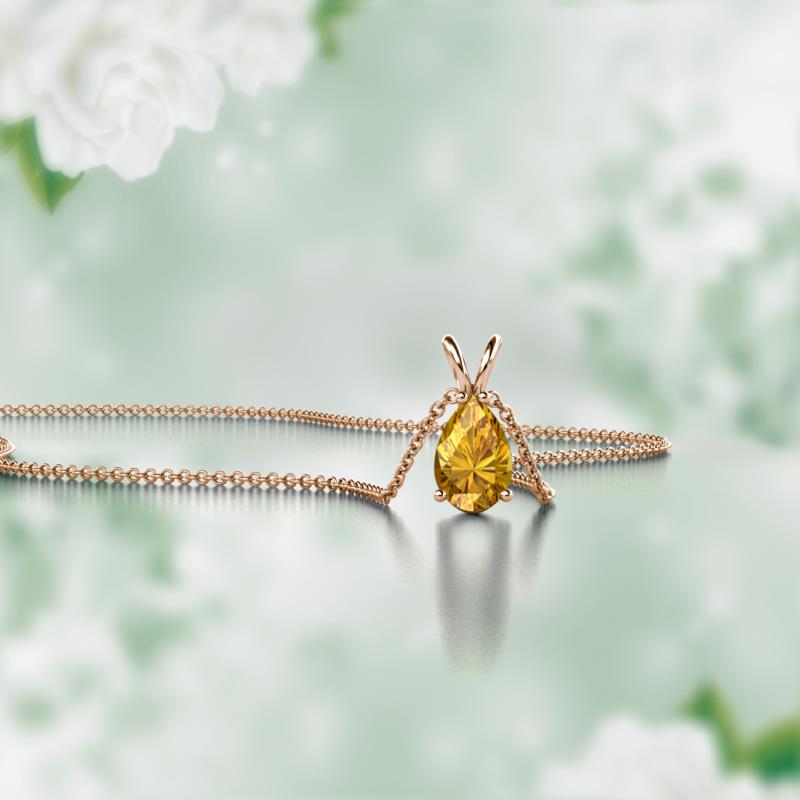 Pear Cut (6x4 mm) Citrine Double Bail Womens Solitaire Pendant Necklace 1/2 ct 14K Rose Gold.Included 16 Inches 14K Rose Gold Chain More Details ...