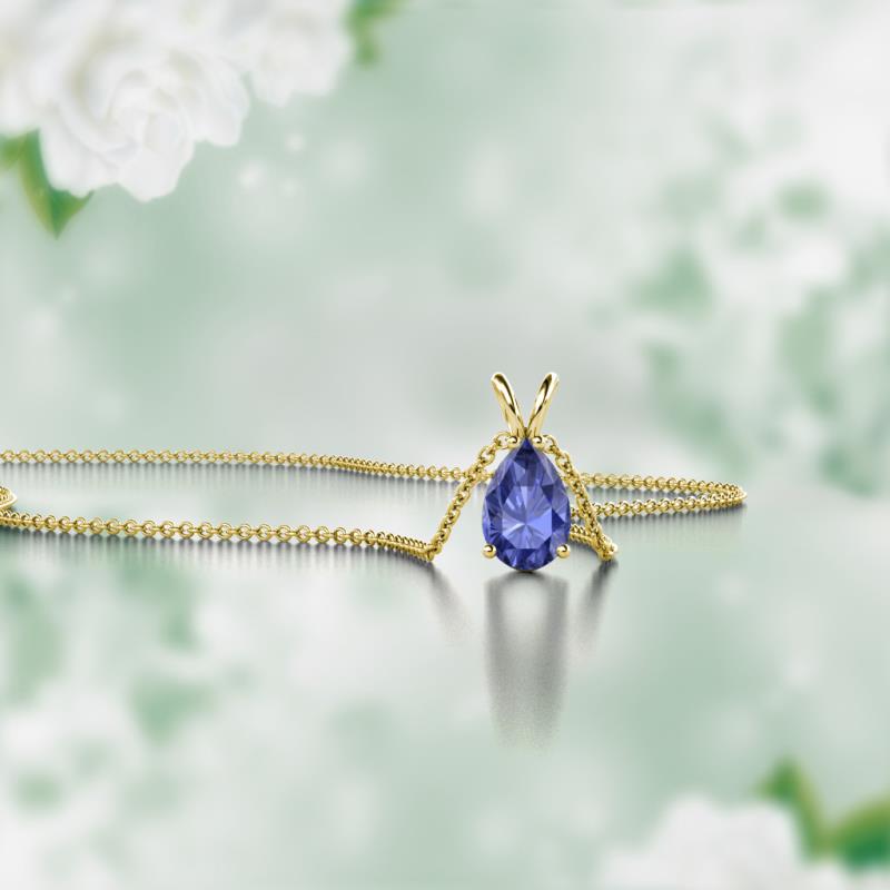 Pear Cut (6x4 mm) Iolite Double Bail Womens Solitaire Pendant Necklace 1/2 ct 14K Yellow Gold.Included 16 Inches 14K Yellow Gold Chain More Details ...