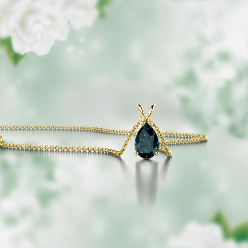 Charm her neckline with this 0.50 ct Double Bail Solitaire Pendant which holds Pear Cut London Blue Topaz beautifully Centered which is secured with Prong Setting that dangles from cable chain making it look Stunning.