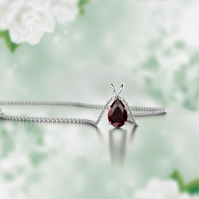 Pear Cut (6x4 mm) Red Garnet Double Bail Womens Solitaire Pendant Necklace 1/2 ct 14K White Gold.Included 16 Inches 14K White Gold Chain More Details ...