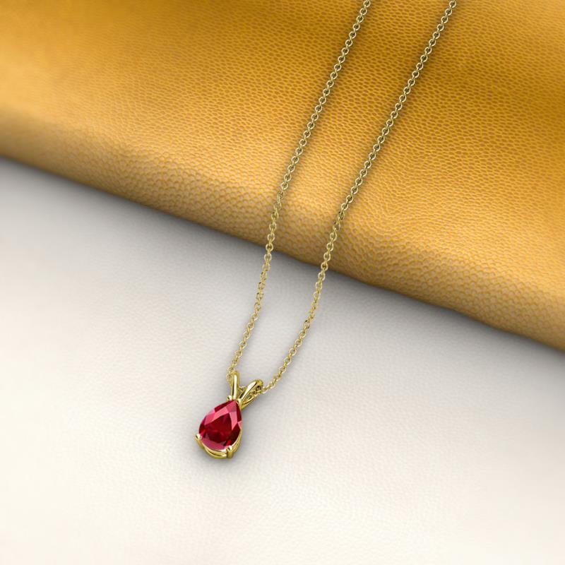 Pear Cut (7x5 mm) Ruby Double Bail Womens Solitaire Pendant Necklace 7/8 ct 14K Yellow Gold.Included 16 Inches 14K Yellow Gold Chain More Details ...