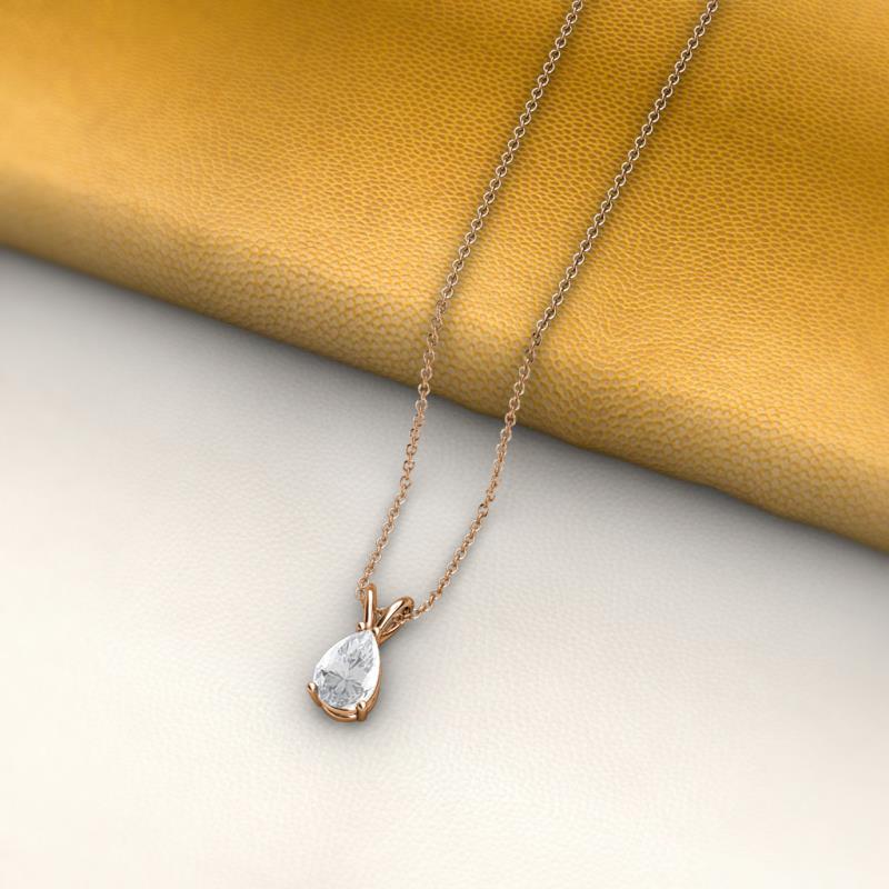 Pear Cut (7x5 mm) White Sapphire Double Bail Womens Solitaire Pendant Necklace 7/8 ct 14K Rose Gold.Included 16 Inches 14K Rose Gold Chain More Details ...