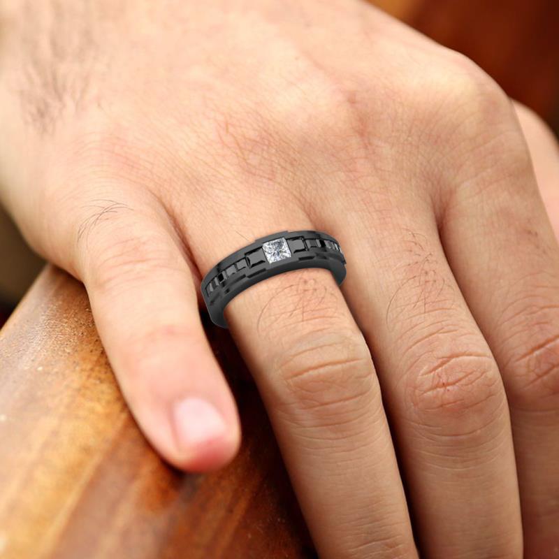 1.48 ctw Princess shape Diamond (4 mm) accented Black Diamonds Men Wedding Band using Channel setting in 18K Gold More Details ...