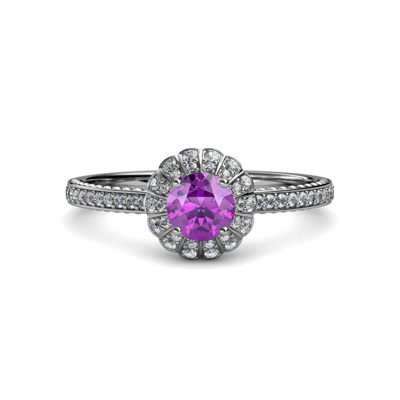 3/4 ctw Round Amethyst and Diamond Floral Halo Engagement Ring 14K White Gold More Details ...