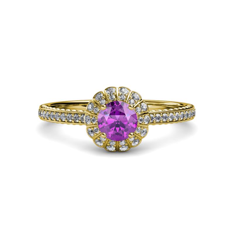 3/4 ctw Round Amethyst and Diamond Floral Halo Engagement Ring 14K Yellow Gold More Details ...