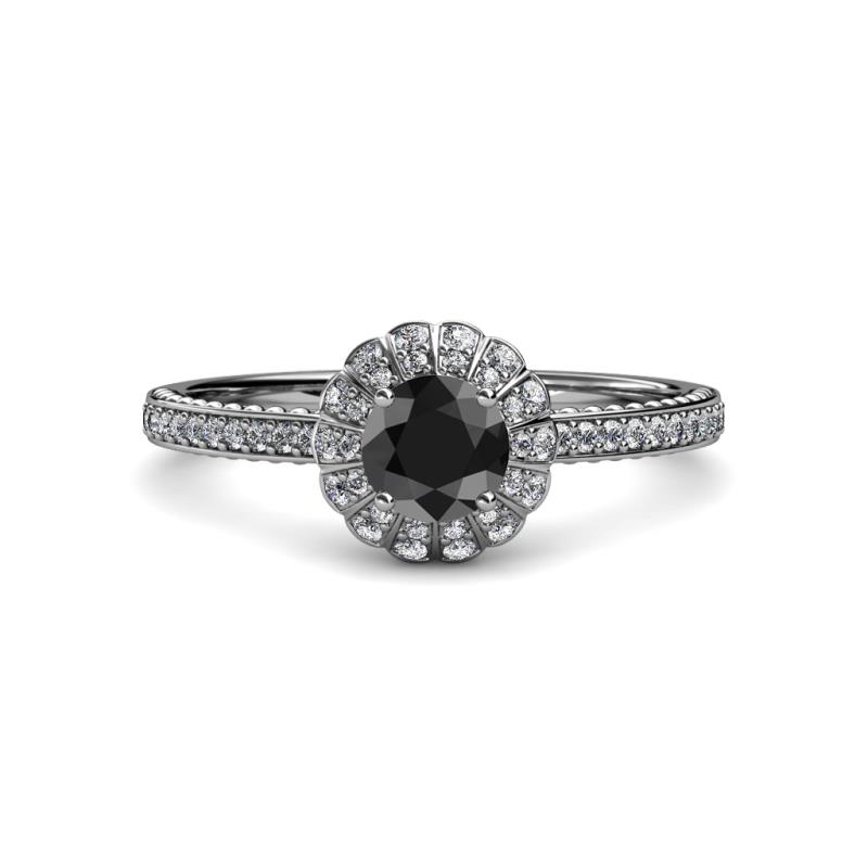 7/8 ctw Round Black and White Diamond Floral Halo Engagement Ring 14K White Gold More Details ...