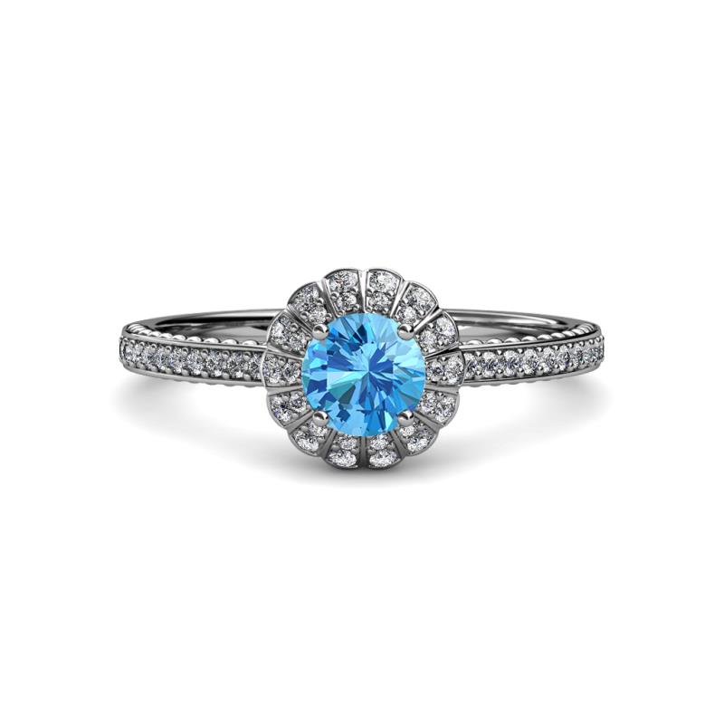 7/8 ctw Round Blue Topaz and Diamond Floral Halo Engagement Ring 18K White Gold More Details ...