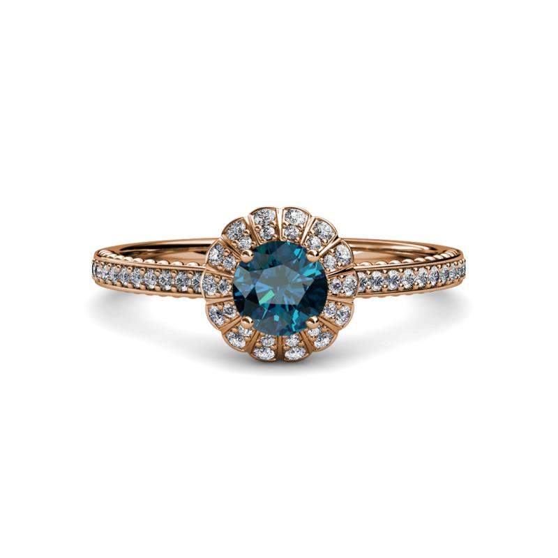 7/8 ctw Round Blue and White Diamond Floral Halo Engagement Ring 18K Rose Gold More Details ...