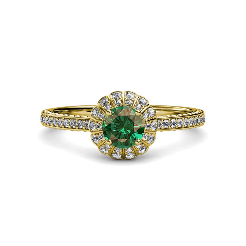7/8 ctw Round Diamond and Lab Created Alexandrite Floral Halo Engagement Ring 18K Yellow Gold More Details ...