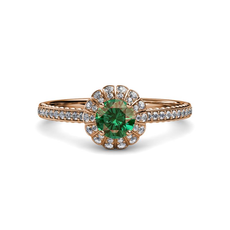 7/8 ctw Round Diamond and Lab Created Alexandrite Floral Halo Engagement Ring 18K Rose Gold More Details ...