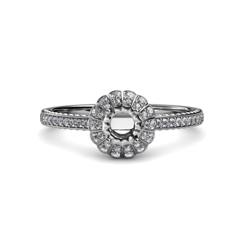 Diamond Four Prong Floral Semi Mount Womens Halo Engagement Ring Setting 0.42 ctw 18K White Gold More Details ...