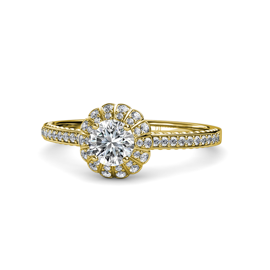 Diamond Four Prong Floral Semi Mount Womens Halo Engagement Ring Setting 0.42 ctw 18K Yellow Gold More Details ...