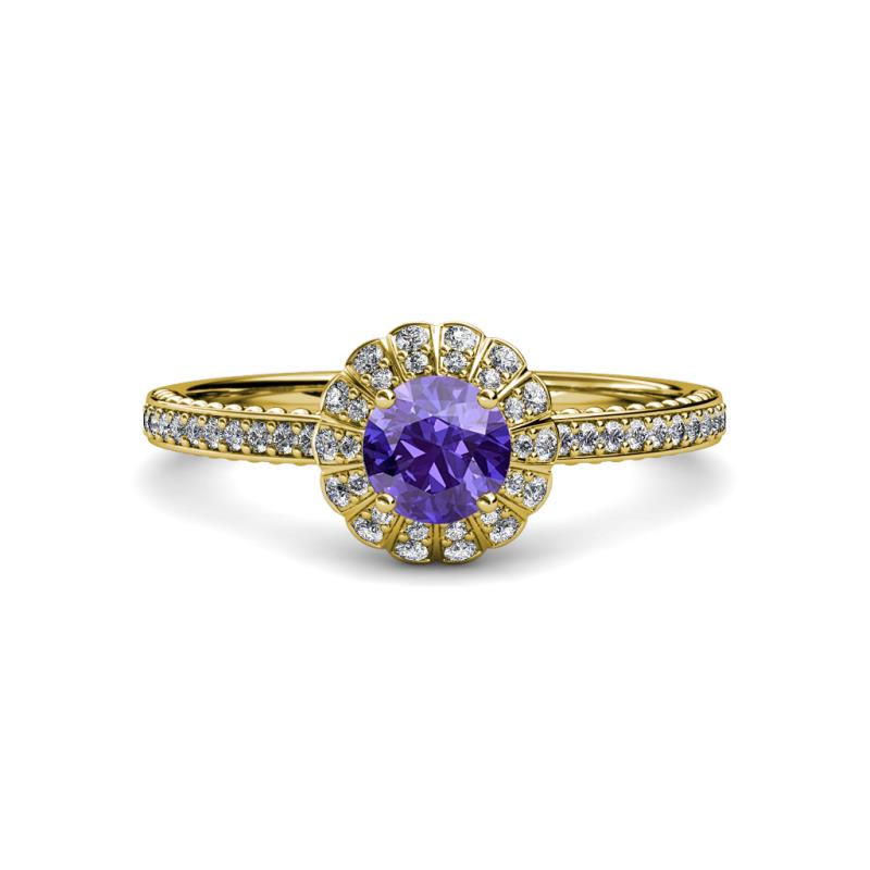 3/4 ctw Round Iolite and Diamond Floral Halo Engagement Ring 14K Yellow Gold More Details ...