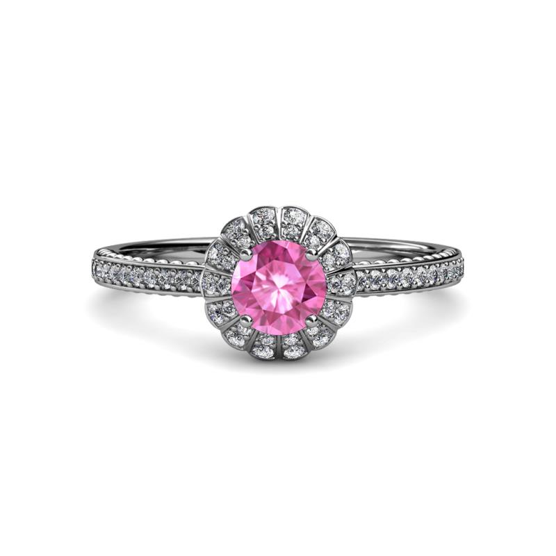 1 ctw Round Lab Created Pink Sapphire and Diamond Floral Halo Engagement Ring 14K White Gold More Details ...