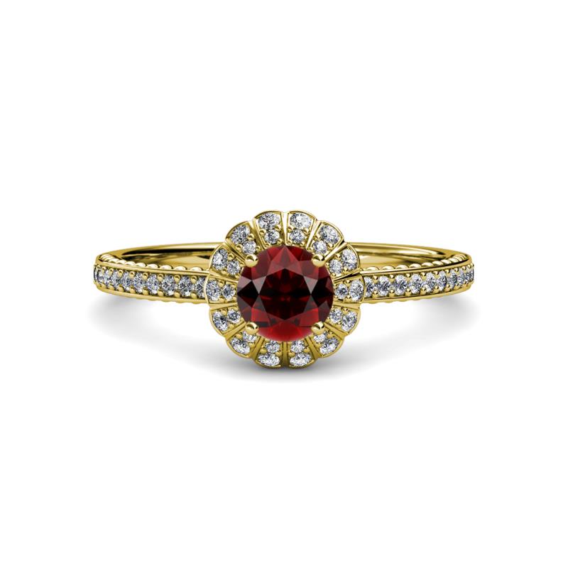 1 ctw Round Red Garnet and Diamond Floral Halo Engagement Ring 18K Yellow Gold More Details ...