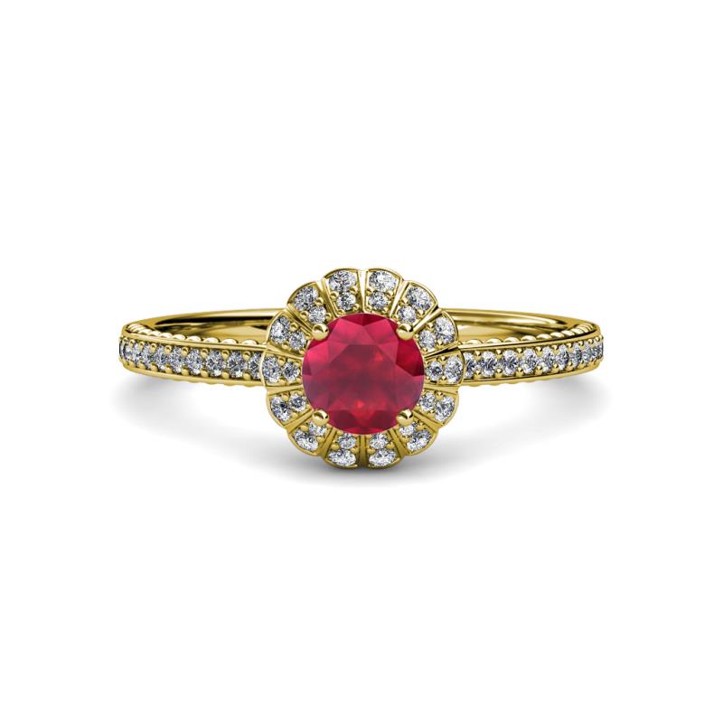 1 ctw Round Ruby and Diamond Floral Halo Engagement Ring 18K Yellow Gold More Details ...