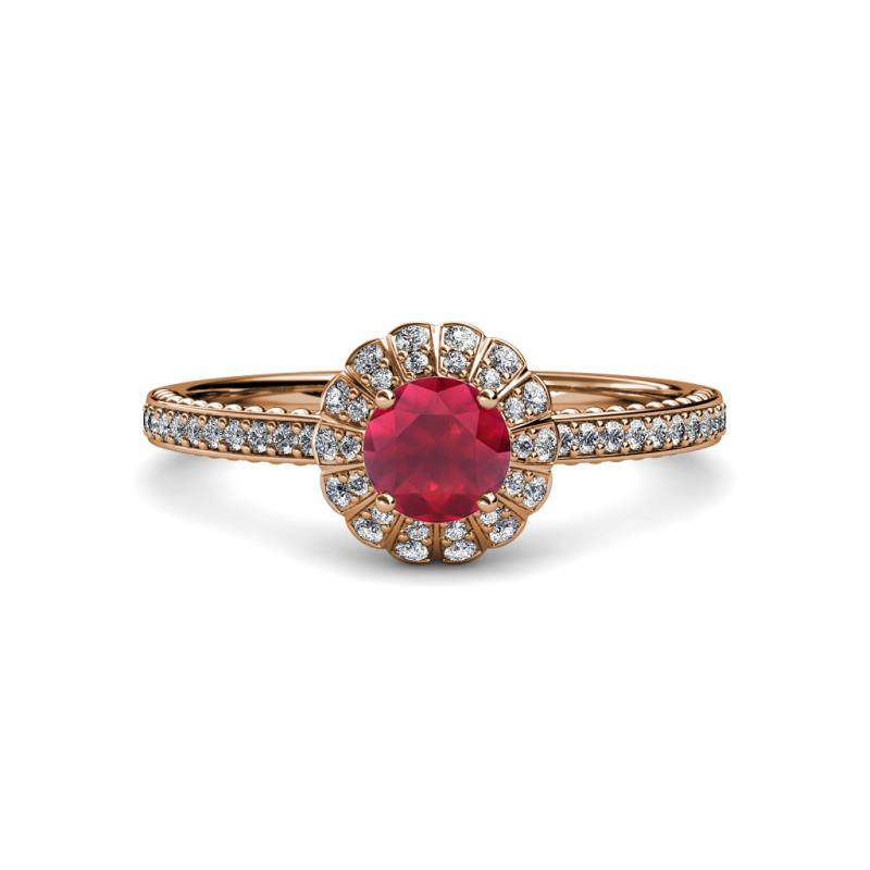1 ctw Round Ruby and Diamond Floral Halo Engagement Ring 18K Rose Gold More Details ...