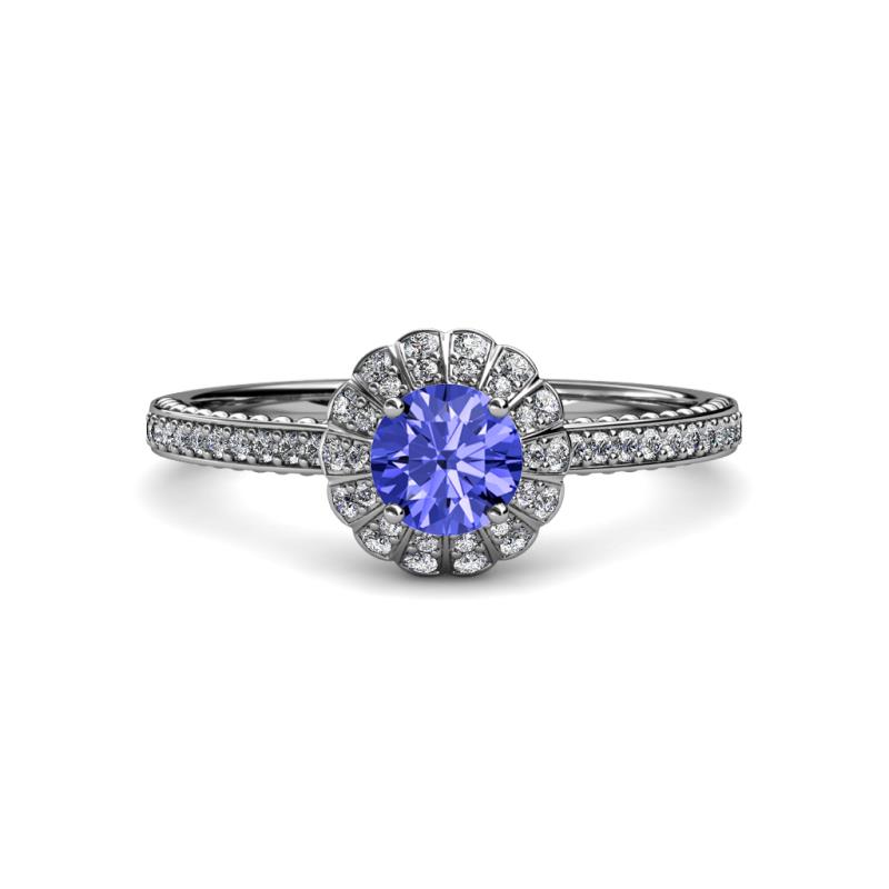 7/8 ctw Round Tanzanite and Diamond Floral Halo Engagement Ring 14K White Gold More Details ...