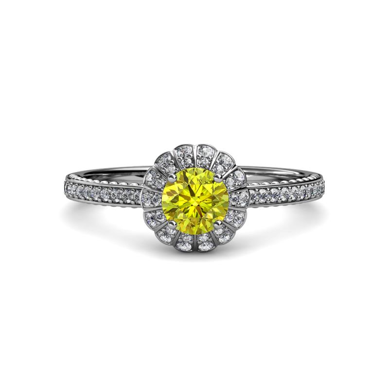 7/8 ctw Round Yellow and White Diamond Floral Halo Engagement Ring 18K White Gold More Details ...