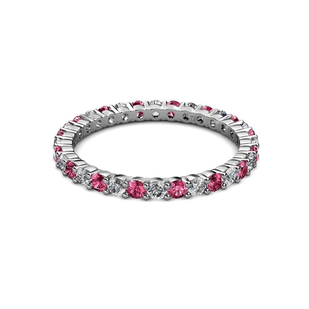 Express your Love with this undeniably striking Eternity Band of 0.87 Carat tw-1.02 Carat tw which encircles the finger with Series of Pink Tourmaline and Diamond all around set beautifully using Common Prong that offers a beautiful representation of your everlasting Love. *As per ring size the stone and carat total weight changes.