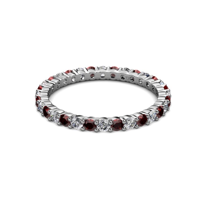 Express your Love with this undeniably striking Eternity Band of 1.12 Carat tw-1.31 Carat tw which encircles the finger with Series of Red Garnet and Lab Grown Diamond all around set beautifully using Common Prong that offers a beautiful representation of your everlasting Love. *As per ring size the stone and carat total weight changes.
