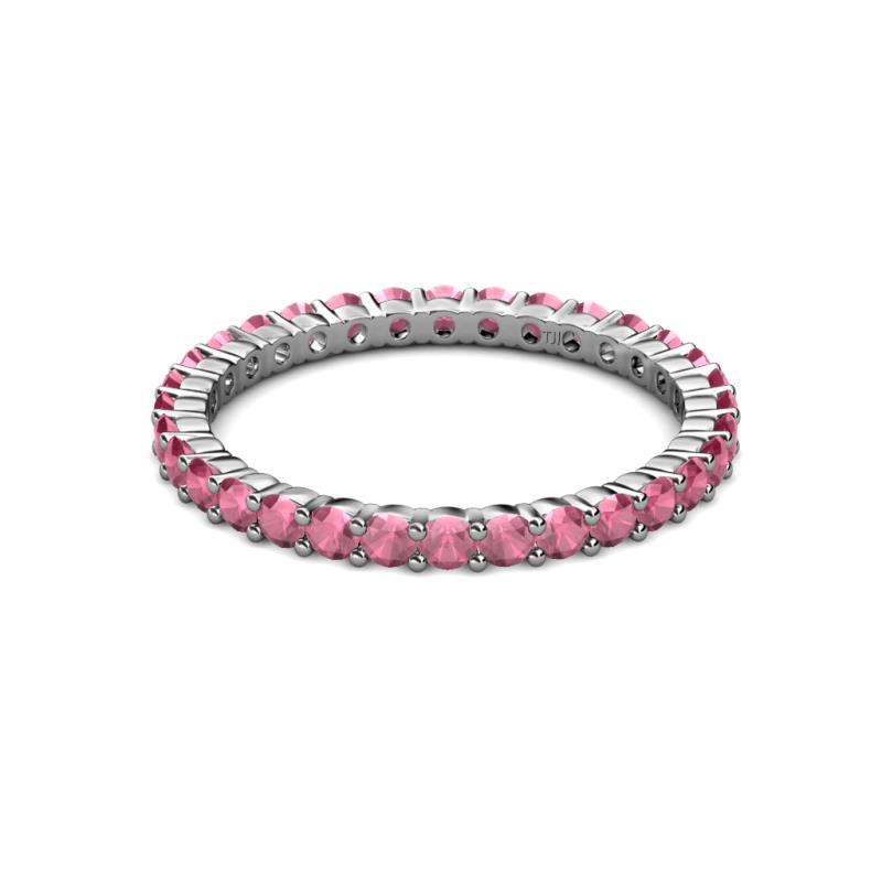 Express your Love with this undeniably striking Eternity Band of 1.21 Carat tw-1.42 Carat tw which encircles the finger with Series of Rhodolite Garnet all around set beautifully using Common Prong that offers a beautiful representation of your everlasting Love. *As per ring size the stone and carat total weight changes.