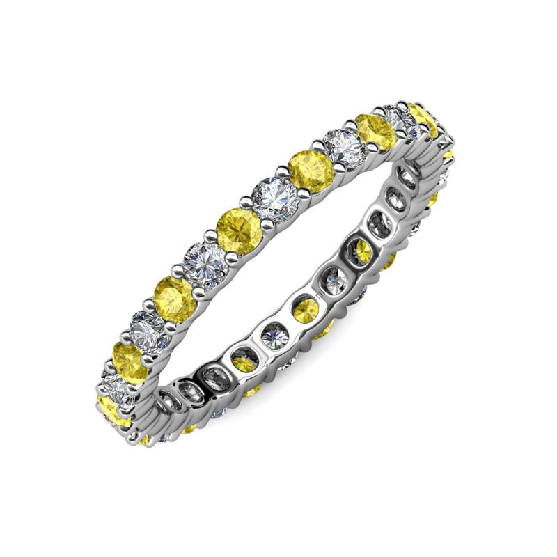 Express your Love with this undeniably striking Eternity Band of 1.51 Carat tw-1.79 Carat tw which encircles the finger with Series of Yellow Sapphire and Diamond all around set beautifully using Common Prong that offers a beautiful representation of your everlasting Love. *As per ring size the stone and carat total weight changes.