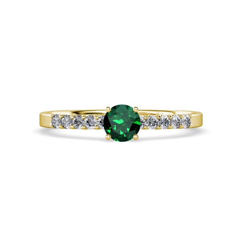 Promise to love her when you gift her with this stunning 1.10 ct tw Engagement Ring which centers Emerald lined with glistening Diamond on the shank giving it immense beauty in its simplicity.