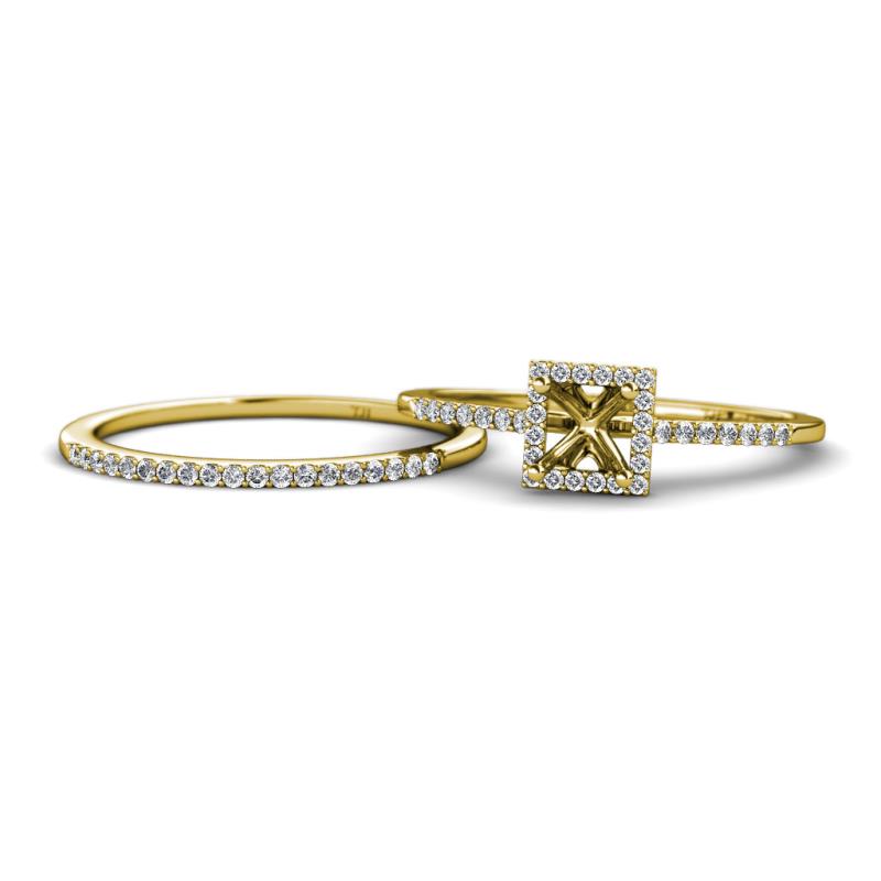 Round Diamond 0.55 ctw Womens Semi Mount Halo Engagement Ring & Matching Diamond Band 14K Yellow Gold More Details ...