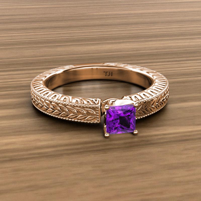 Princess Cut Amethyst 1.10 ct Engraved Milgrain Womens Solitaire Engagement Ring 14K Rose Gold More Details ...