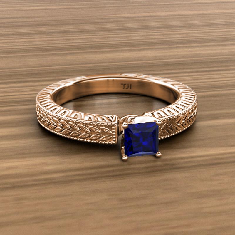 Princess Cut Lab Created Blue Sapphire 1.44 ct Engraved Milgrain Womens Solitaire Engagement Ring 14K Rose Gold More Details ...