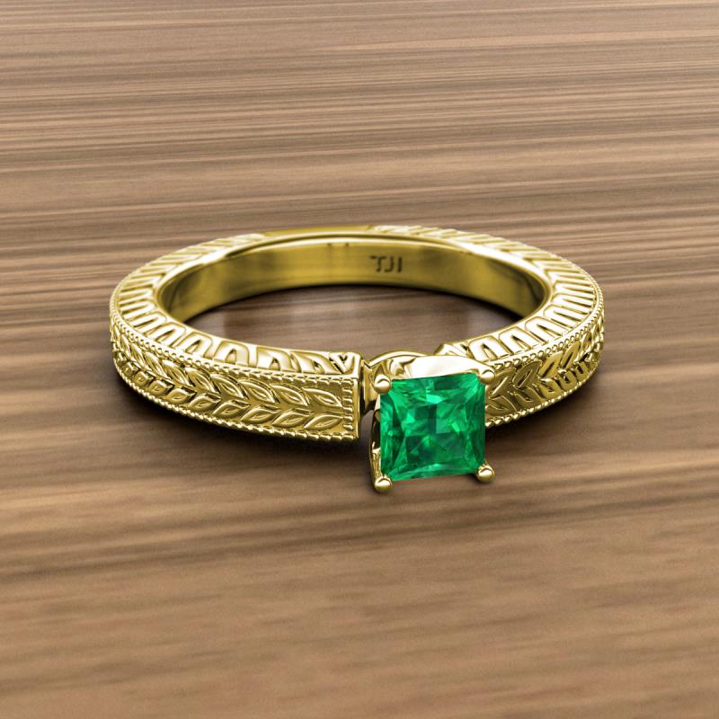 Princess Cut Lab Created Emerald 0.97 ct Engraved Milgrain Womens Solitaire Engagement Ring 14K Yellow Gold More Details ...