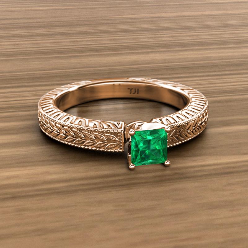 Princess Cut Lab Created Emerald 0.97 ct Engraved Milgrain Womens Solitaire Engagement Ring 14K Rose Gold More Details ...