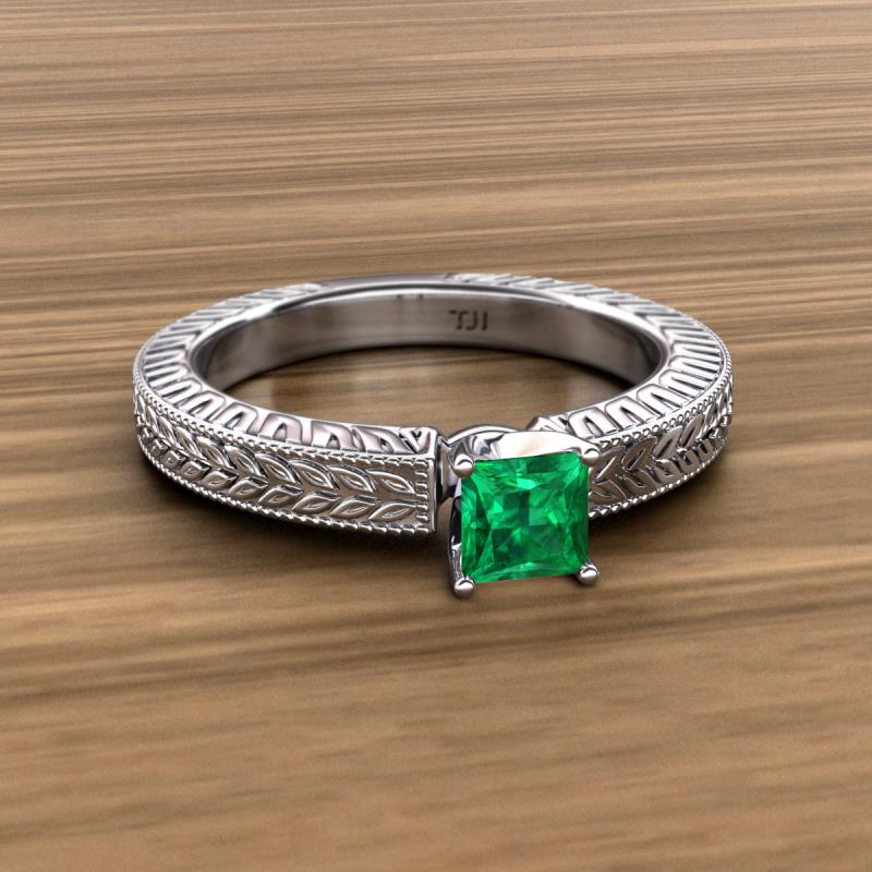 Princess Cut Lab Created Emerald 0.97 ct Engraved Milgrain Womens Solitaire Engagement Ring 18K White Gold More Details ...